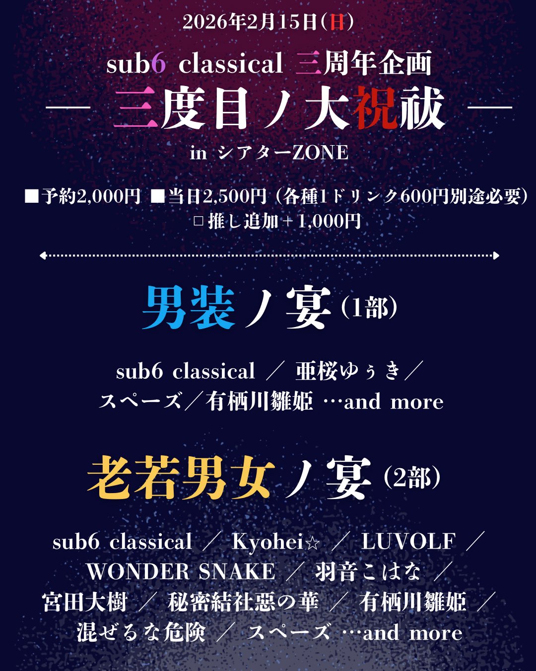 sub6 classical/Kyohei☆/LUVOLF/WONDER SNAKE/スペーズ/有栖川雛姫/宮田大樹/秘密結社惡の華/羽音こはな/混ぜるな危険/…andmore