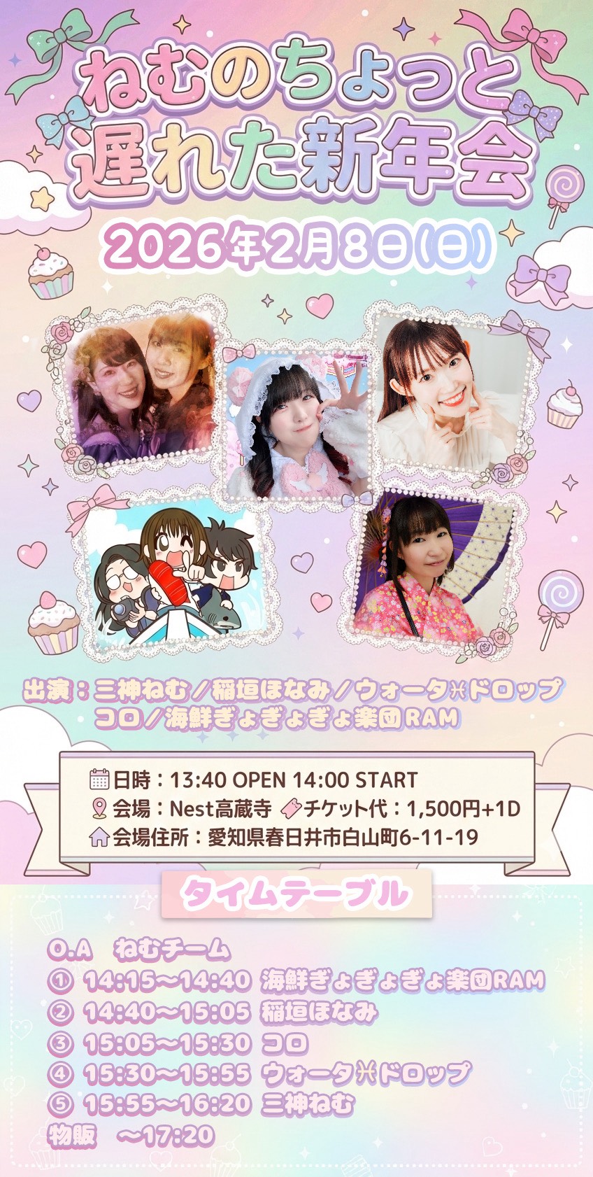 三神ねむ/ウォータ♓ドロップ/稲垣ほなみ/コロ/海鮮ぎょぎょぎょ楽団RAM