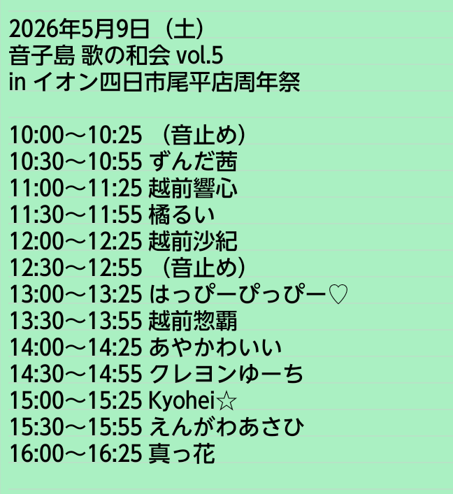 ずんだ茜/越前響心/橘るい/越前沙紀/はっぴーぴっぴー♡/越前惣覇/あやかわいい/クレヨンゆーち/Kyohei☆/えんがわあさひ/真っ花