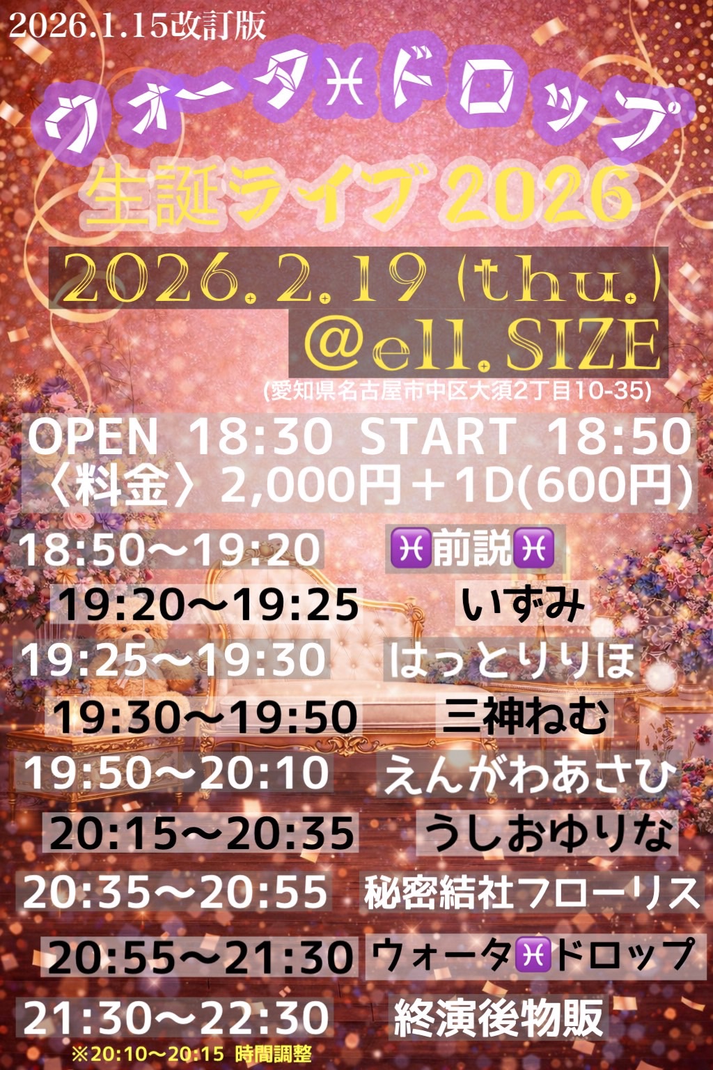 ■当日:2,000円(1ドリンク600円別途必要)