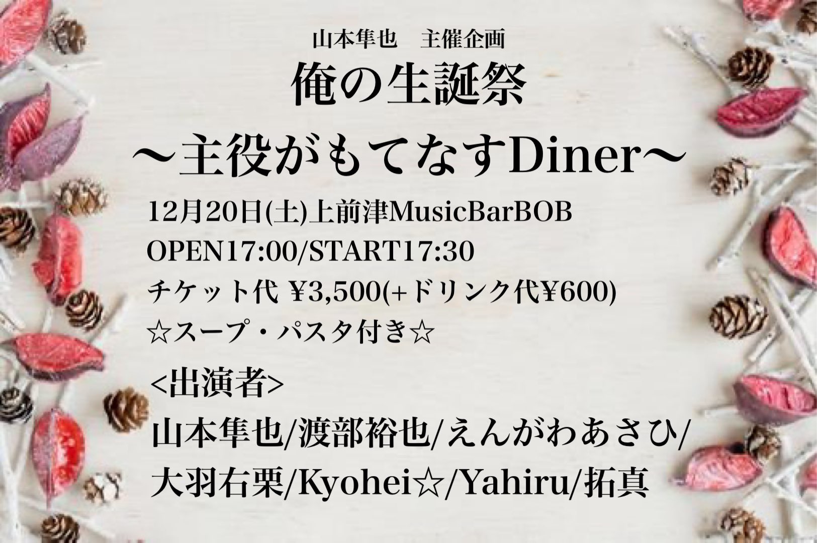 ■通常チケット:2,000円 ■生誕特典付きチケット:3,000円