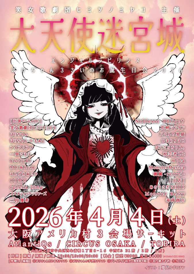 笑女歌劇団ヒミツノミヤコ/ぼけちゃん/ぼけちゃん×もみじ/アイアムアイ/一畳さえこ/Usotuki/MCあんにゅ/えんがわあさひ/ODMR/ophelia 20mg/コスメティックラヴァーズ/二段優希/Noblesse Oblige♰/花柄ランタン/バベルの黒猫/ひまわりまい/ぽてさらちゃん。/枕芸者しと/moca/MonsterMusica/麗麗-reirei-/あのうさぎSHOP(shop)/Monster Berry(shop)/毒蒔商店(shop)
