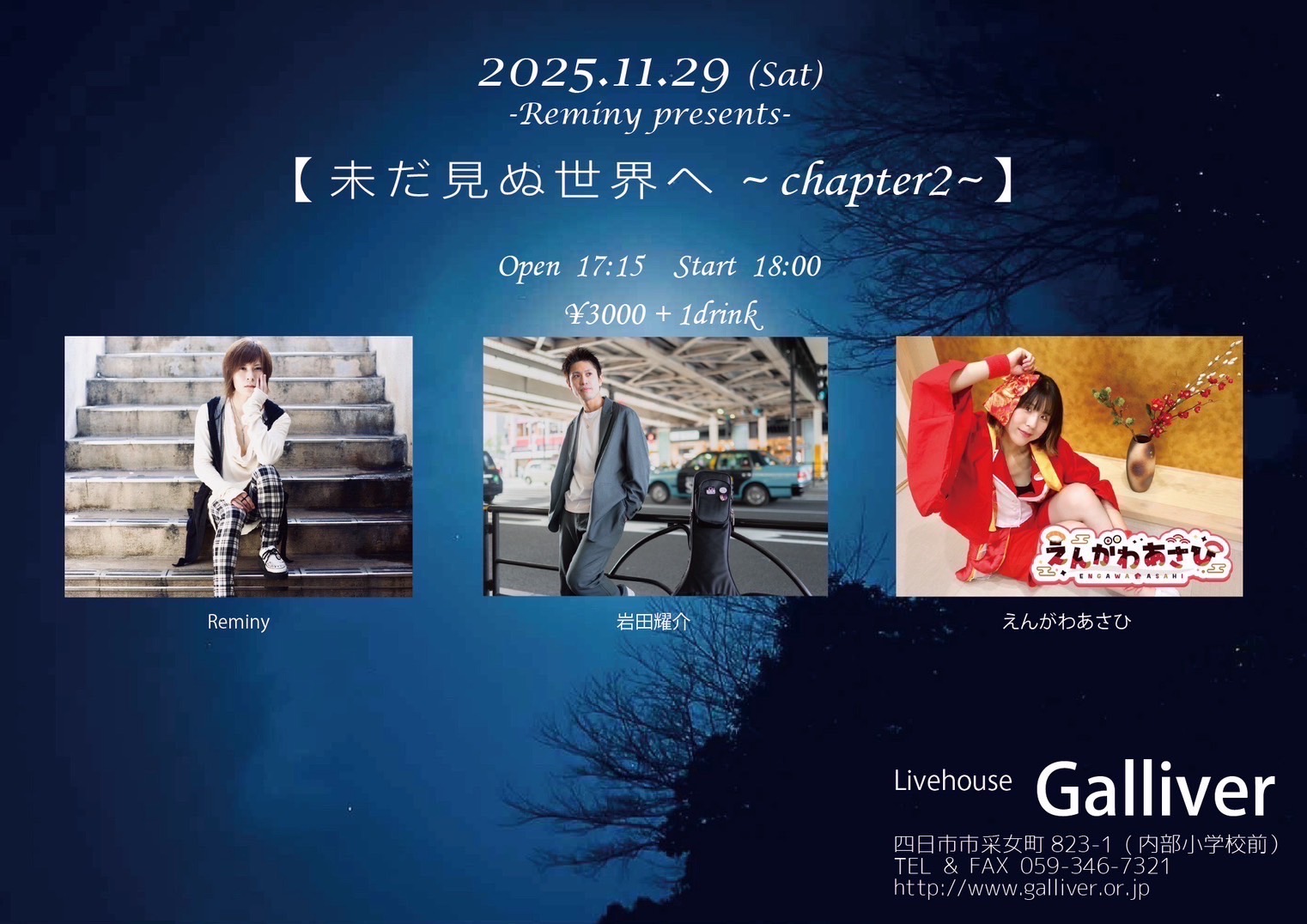 ◼︎当日:3,000円(別途1ドリンク代必要)
