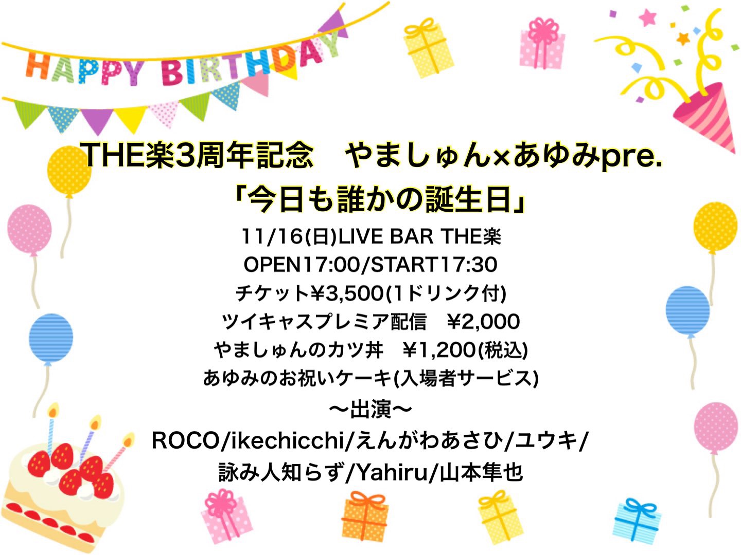 ■当日:3,500円(1ドリンク付)
